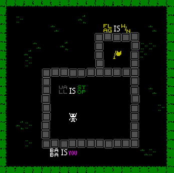 In the first level i made it so that rock is win on accident when i figured out i could change rules. So then in the "Wall is stop" Level i made myself the wall