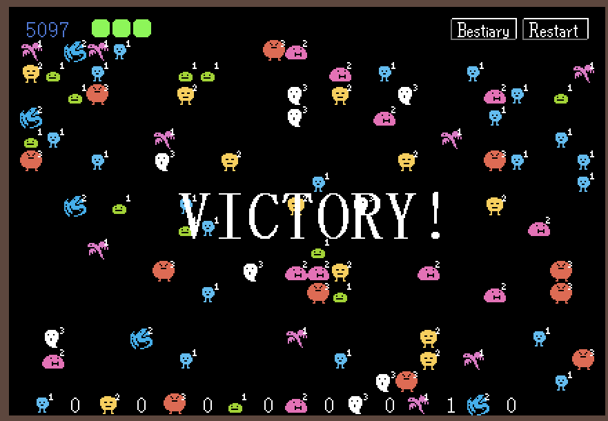 Cool! I eventually got used to monsters having a larger area of effect than I'm used to, but then the slimes came in to increase the difficulty! In the bestiary I see a ghost too, which makes me very afraid...